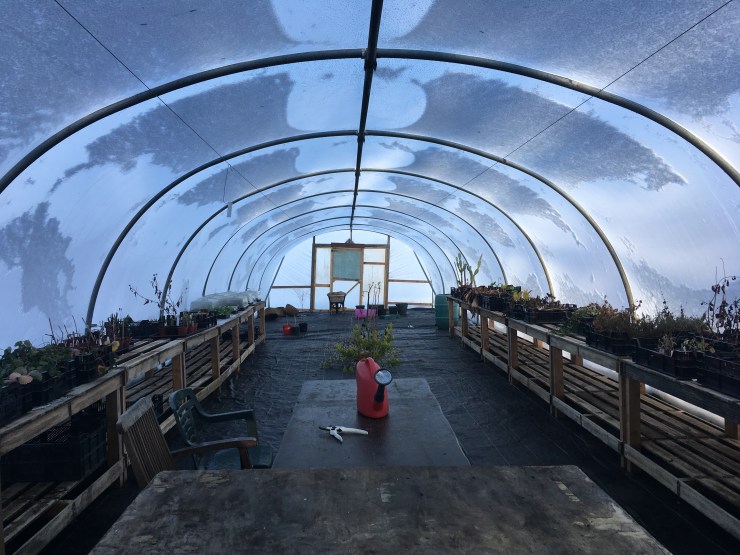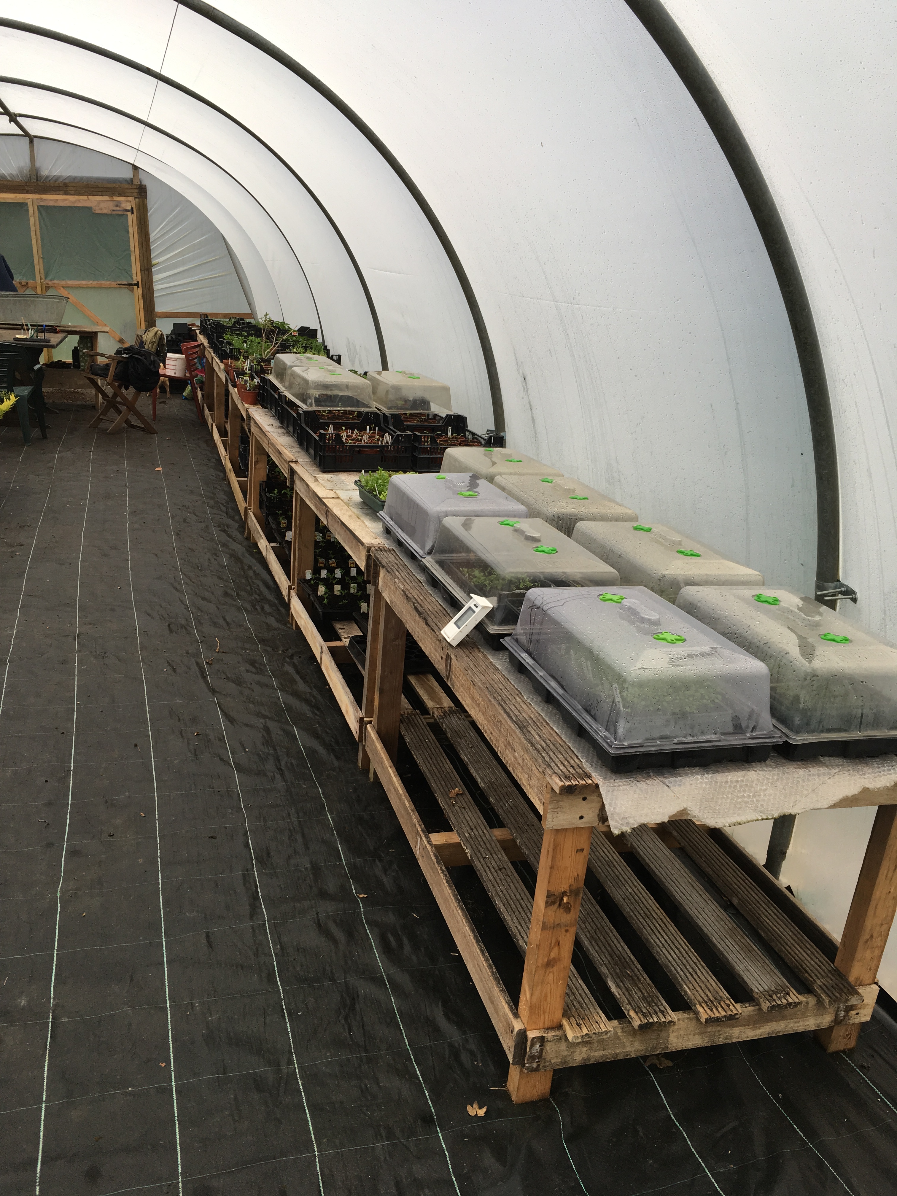 In summer 2018 we invested in two 22m long polytunnels which we use to over winter plants, start seedlings off and house young plants.
