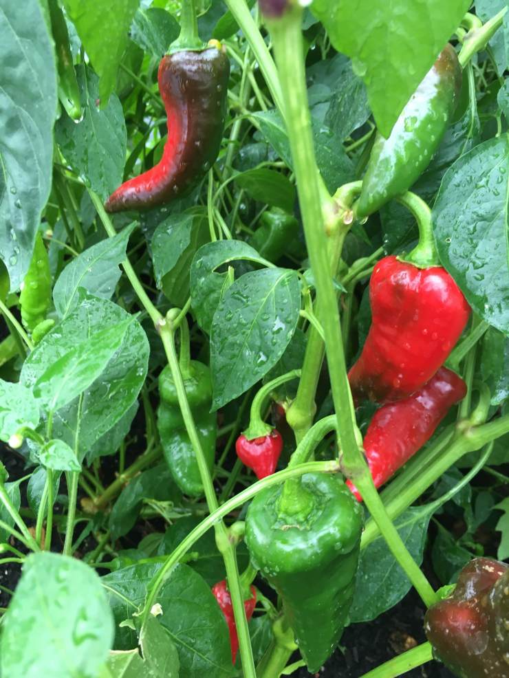 Last year we didn’t manage to get any fully ripe sweet peppers from the vegetable garden, but this year we had so many from the new raised beds in the polytunnel!