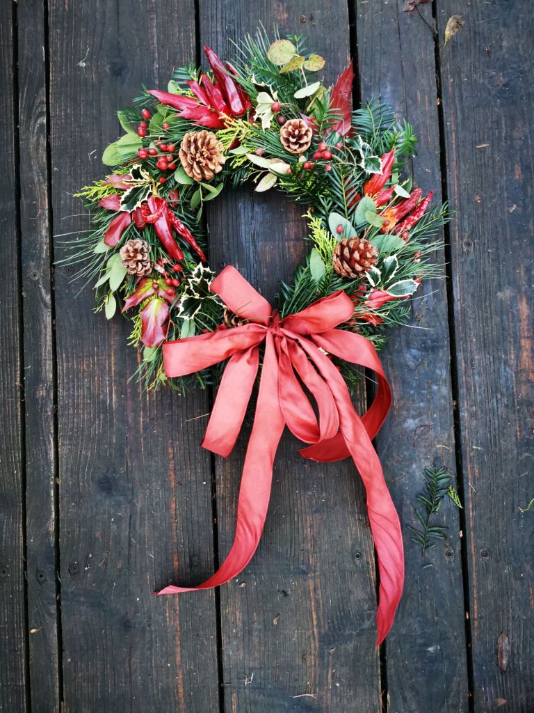 Most of the foliage used for making festive wreaths are from evergreen shrubs and trees as the leaves stay fresh for a long time once harvested. They come in all shapes, sizes, colours and textures giving you the ability to make something really unique.