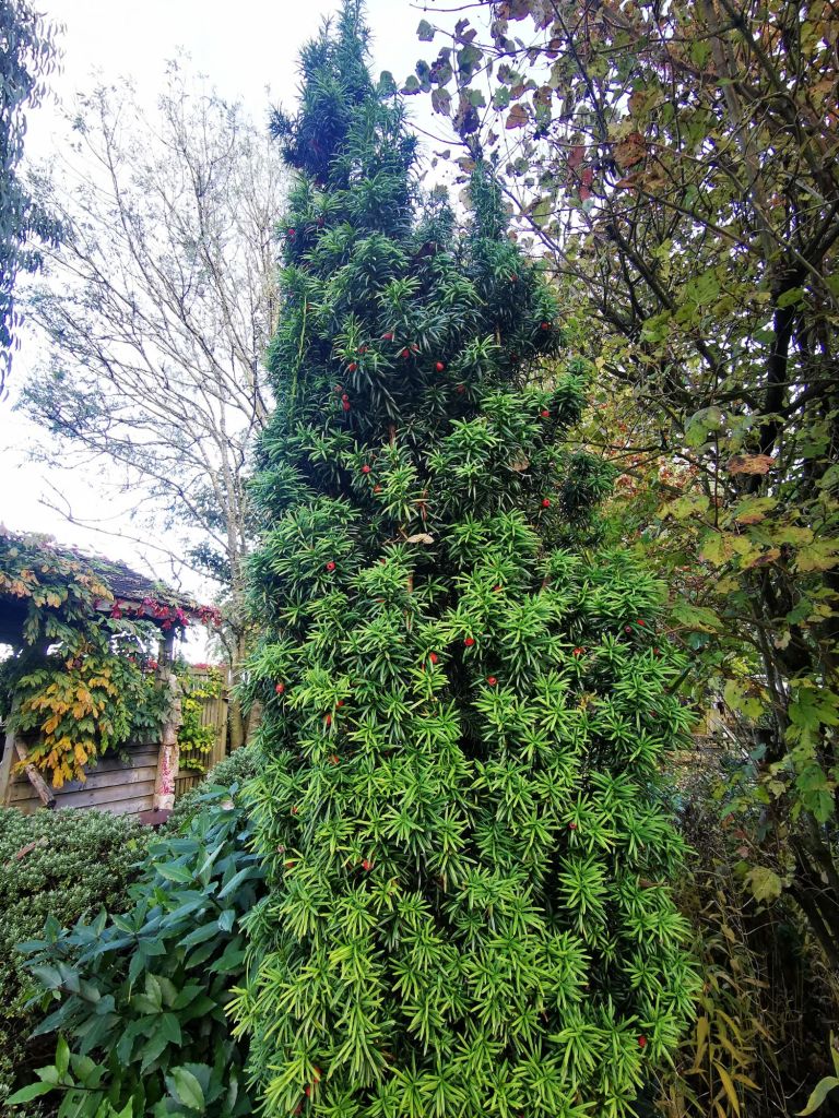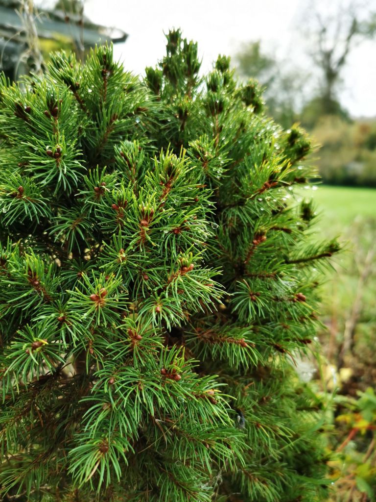 Although there is only one native pine here in the UK (Scots Pine) there are many decorative pines planted in gardens and public areas, often used to adjust the local soil PH, and for the abundance of fallen needles, which can be collected and used elsewhere, including our chicken run!