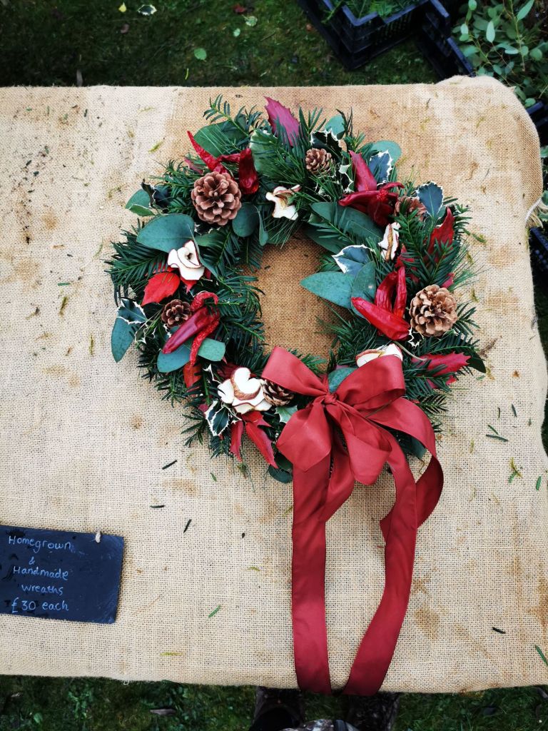It has become very trendy around here to attend a ‘wreath making’ class during the run up to Christmas but they often charge a whopping fee, usually around £60 – £80 for a few hours of guided fun and if you’re lucky a mince pie may be thrown in! They tend to display the same old commonly used materials such as Blue and Norwegian Spruces for a base which are shipped in from distant places and make up the majority of the high price tag, being sold as ‘traditional’ and ‘premium’.