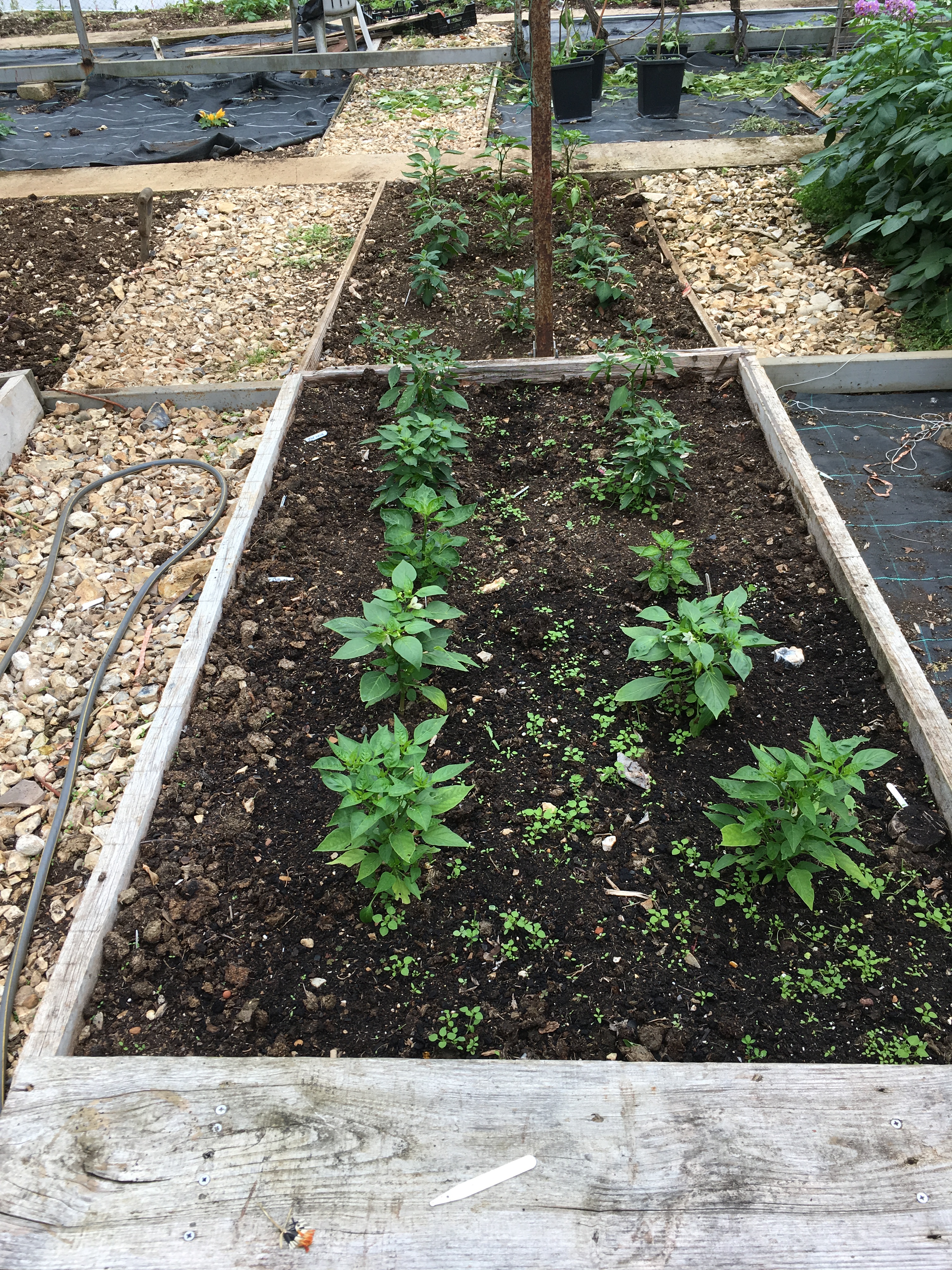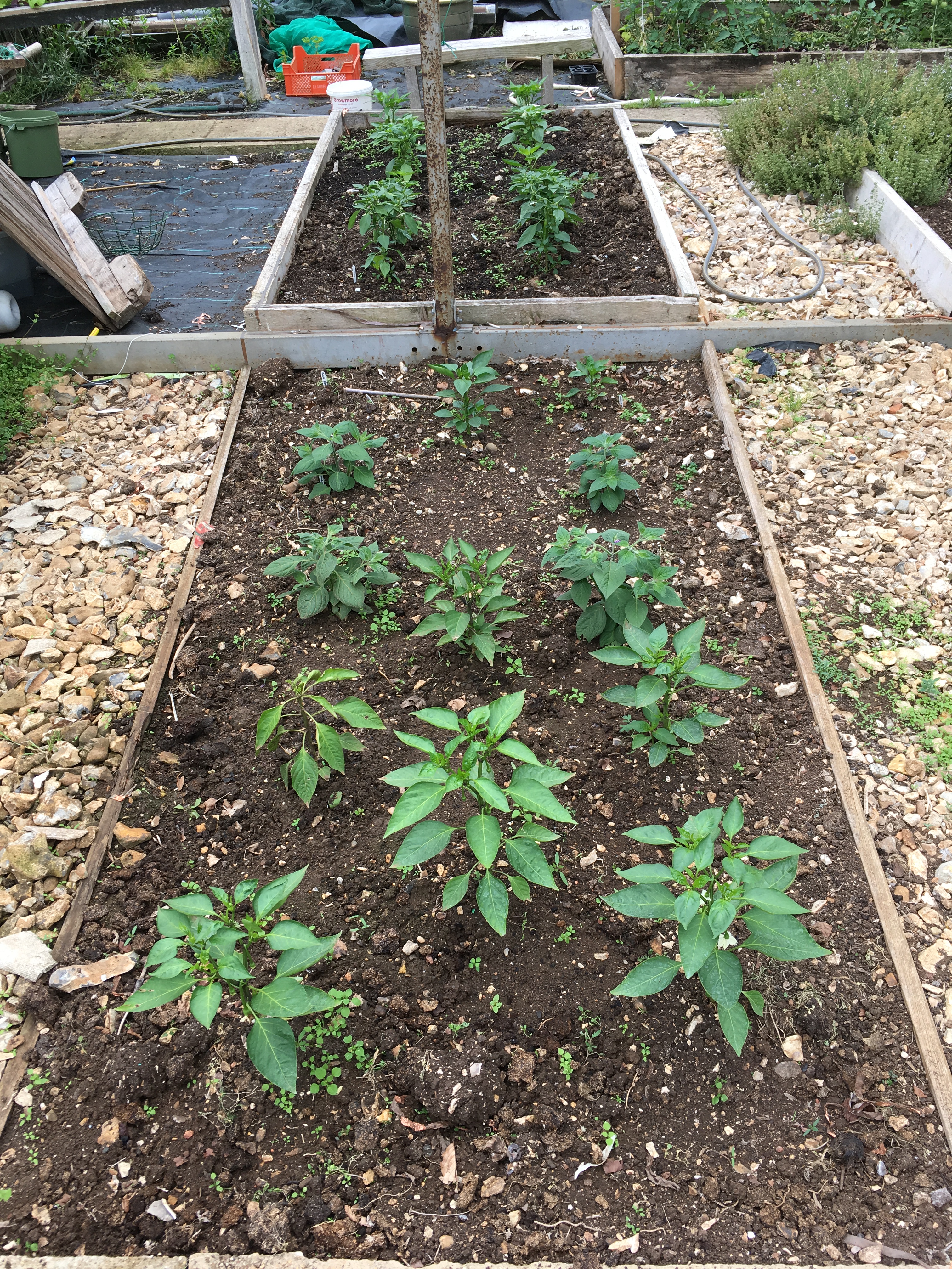 Chilli peppers and Sweet peppers are settled in to their beds by June