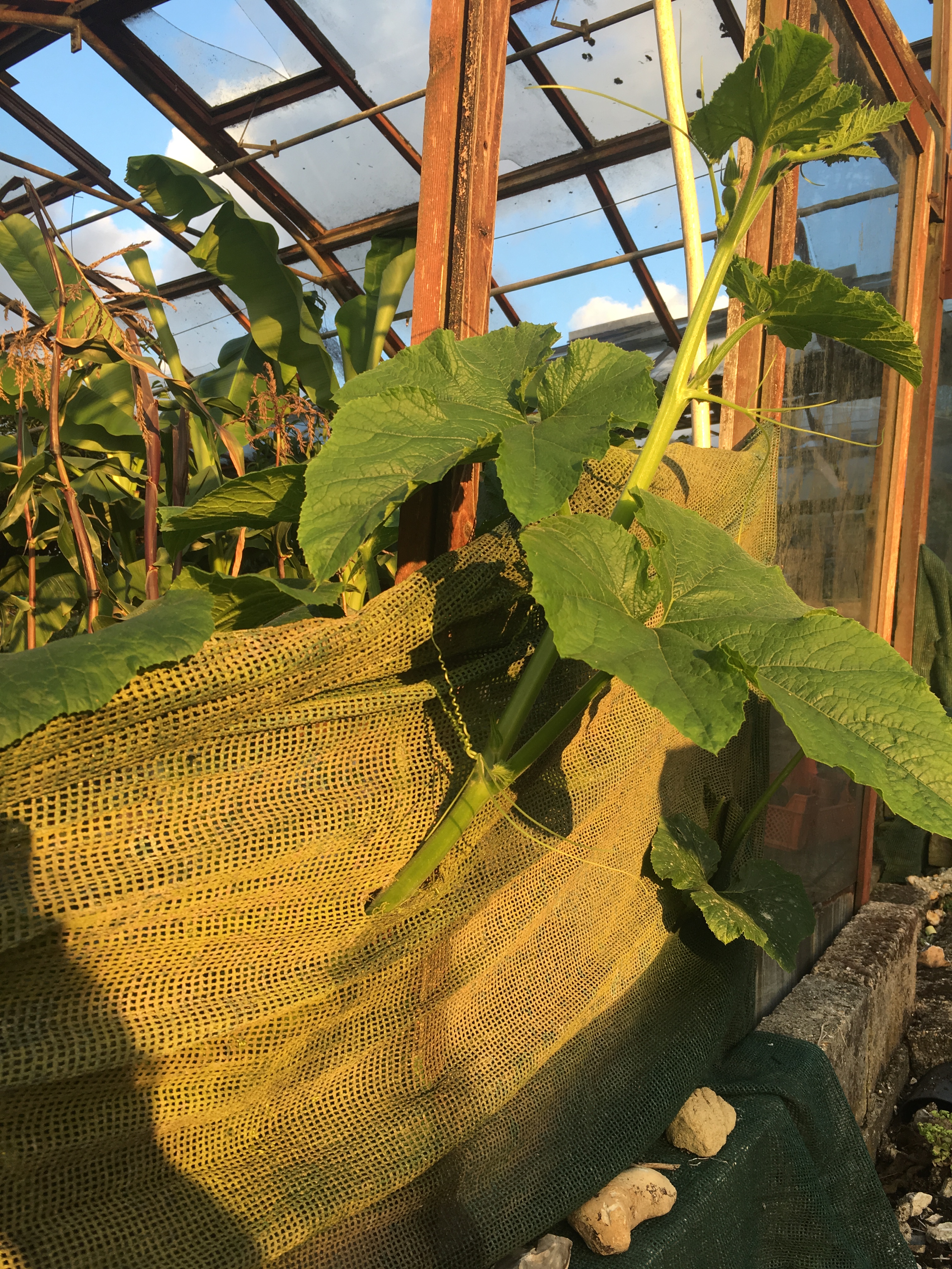 The gourd grew over everything and we had to hack it back heavily but it came back for vengeance and grew out of the greenhouse instead!
